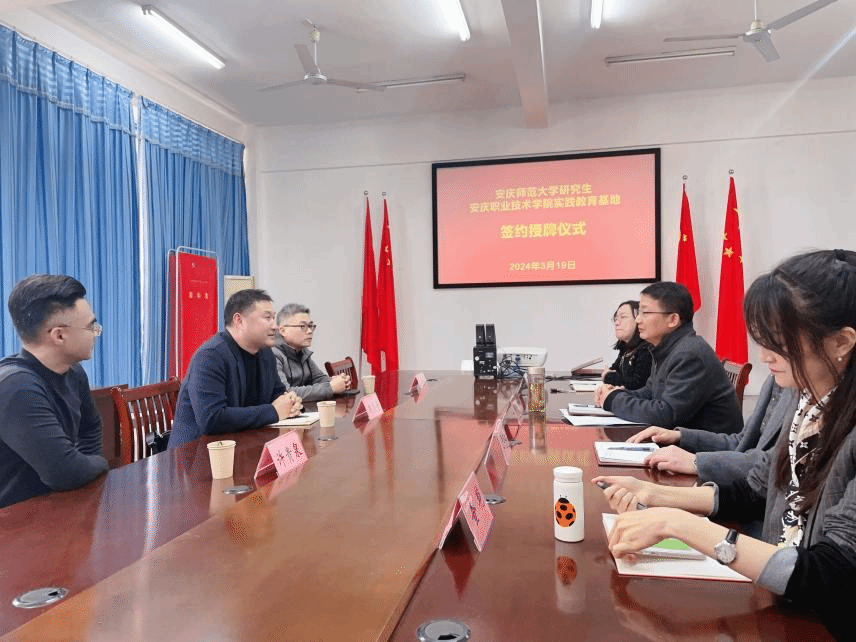 3月19日,太阳成城集团tyc234cc官网经理周多奇、副经理王晓东、武术体操教研室主任许贵泉,赴安庆职业技术公司签订共建体育专业研究生实践教育基地协议。