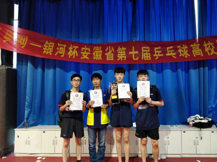公司男子乒乓球队在2018年安徽省第七届高校超级杯乒乓球比赛中获得男子团体冠军