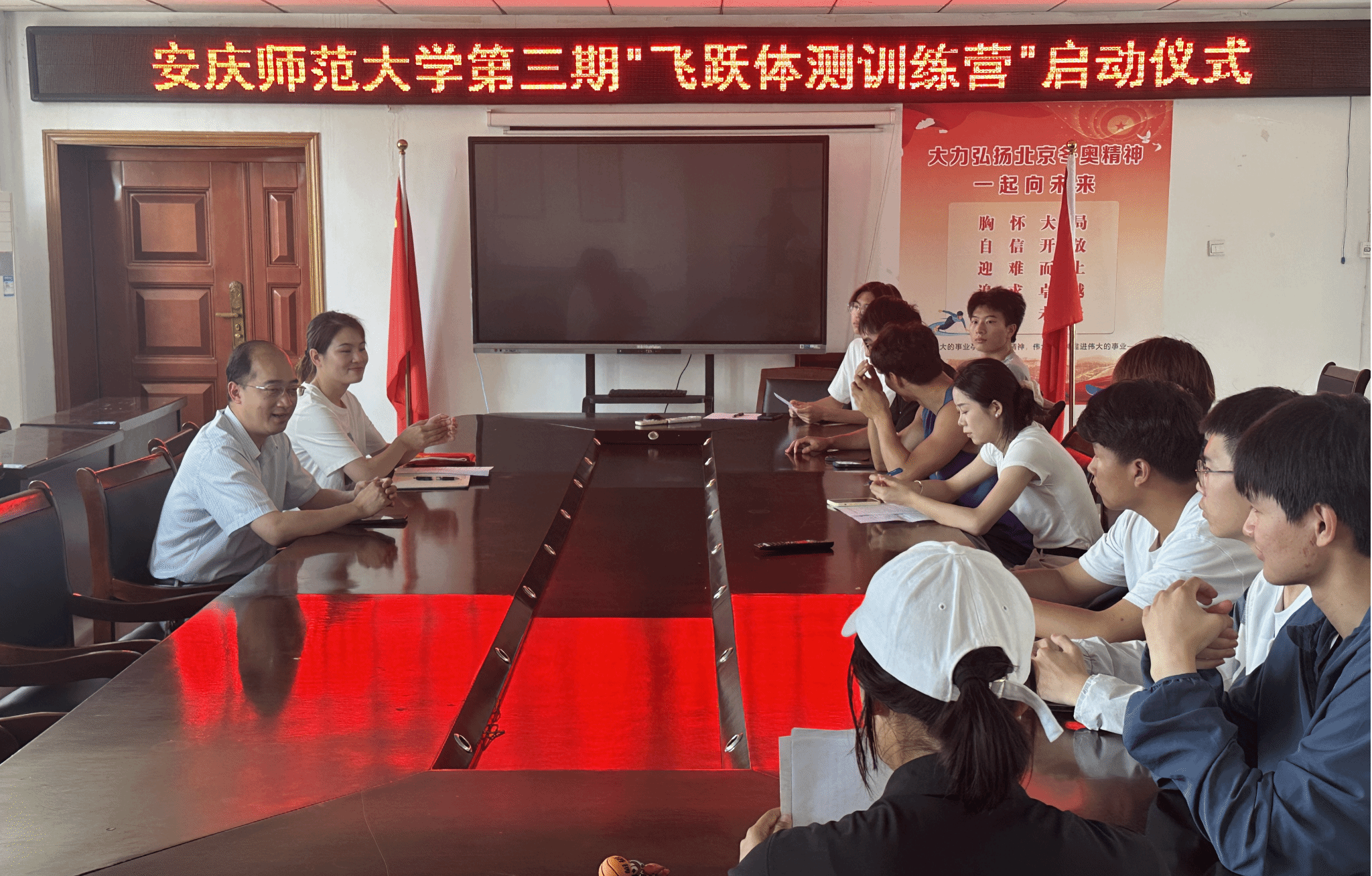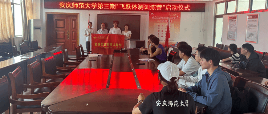 6月7日,太阳成城集团tyc234cc官网在体育馆三楼会议室举办第三期“飞跃体测训练营”启动仪式。体育公司党委副书记王玮出席仪式,太阳成城集团tyc234cc官网资助专管老师方芳、全体体测志愿指导员和学员代表参加启动仪式,方芳主持本次启动仪式。