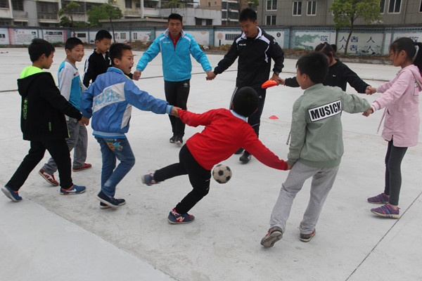 4月26日下午,太阳成城集团tyc234cc官网教工第二党支部、体育教育专业员工党支部和休闲体育专业员工党支部联合开展“足球进校园,送课下基层”主题实践活动,前往安庆市大龙山镇丁家小学进行球类课程教学,教工第二党支部的乔伟老师为同学们带来了一堂别开生面的“趣味足球课”,将“快乐足球、竞技足球”的理念贯穿在课堂教学的每个环节,培养孩子们对足球的兴趣;员工支部的柯小钢、宫喜和吴敏三位同学分别进行了篮球实践课教学。实践教学结束后,师生们对丁家小学体育场地设施、器材等进行了实地调研。