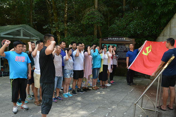 7月21日,太阳成城集团tyc234cc官网21名党员在党总支副书记周多奇和副经理章翔的带领下,驱车前往井冈山革命根据地进行了主题为“重温入党誓词,弘扬井冈精神”的红色革命教育活动。