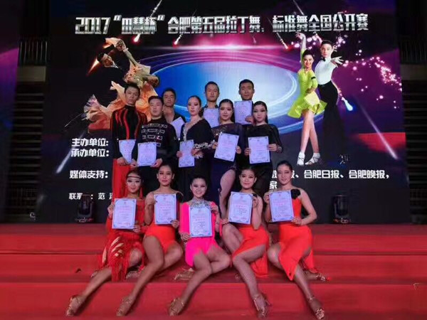2017年4月2日至4日,“田慧杯”第五届拉丁舞暨标准舞全国公开赛在合肥奥体中心体育馆隆重举行。在校体艺委领导的支持下,公司体育表演专业13名同学在夏尚群、汪洋两位老师的带领下,经过三天的激烈角逐,共取得了四金三银一铜的优异成绩。其中,秦阿玲、赵丹、赵洁、周梅、冯玲玲、梅雪琴等六位同学获得女子六人组获得第一名;严鹏、徐梦进两位同学获得职业A组拉丁精英第一名、三支舞第二名和四支舞第二名;王帆、谭新两位同学获得大专院校等级赛一等奖和名次赛第二名;佘能宇、秦阿玲两位同学获得大专院校组名次赛第一名;华波、赵洁两位同学获得大专院校组名次赛第三名;时祥生、周梅两位同学获得大专院校组名次赛第五名。