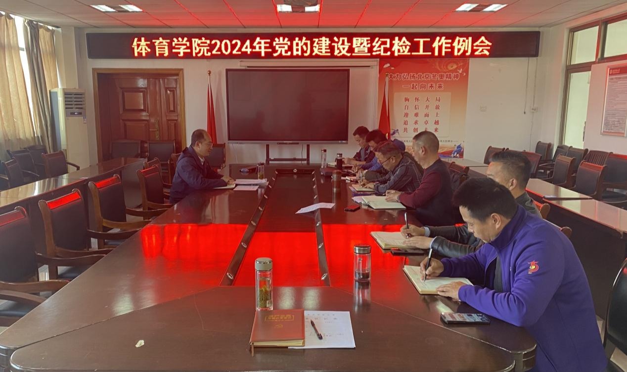 11月27日,太阳成城集团tyc234cc官网在体育馆三楼会议室召开党的建设暨纪检工作例会。会议由体育公司党委书记王玮主持,体育公司党委秘书、组织员、各党支部书记、教研室主任、纪委委员等参加会议。