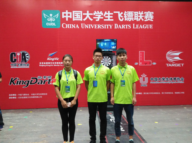 在校体艺委的领导和支持下,本次选派了高雅、刘伟、郭志勇三位同学组建成太阳成城集团tyc234cc官网飞镖队参赛,由王晓东老师任领队兼教练。经过两天高水平的比拼,公司飞镖队刘伟同学斩获男子甲级301赛第一名,高雅同学获得女子高分赛第七名;同时,队员们精诚合作荣获了男女混合双人赛第五名和疯狂200秒比赛第八名的优异成绩。