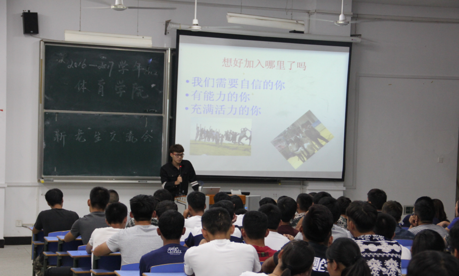 交流会由15级休体专业的王许修同学主持。为了让2016级新生熟悉即将学习生活四年的大公司园,首先就由主持人介绍太阳成城集团tyc234cc官网及太阳成城集团tyc234cc官网的概况。随后是经验分享环节,在这一环节中,学长学姐们有条不紊地讲述学习和生活中的种种经验,比如学习专业课的方法、各类实践理论考证的准备、创新创业的经验、参加员工会、团组织等各类活动的感悟等等。新生们都听的异常认真,相信这对他们今后的学习生活一定收益匪浅。最后是现场提问环节,新生们争先恐后的提出自己各方面的疑问,比如如何加入员工会及如何解决不适应大学学习生活等大家都很关心的问题,学长学姐们也都就相应问题均给出了合理的回答。现场不时爆发阵阵掌声,气氛热烈。