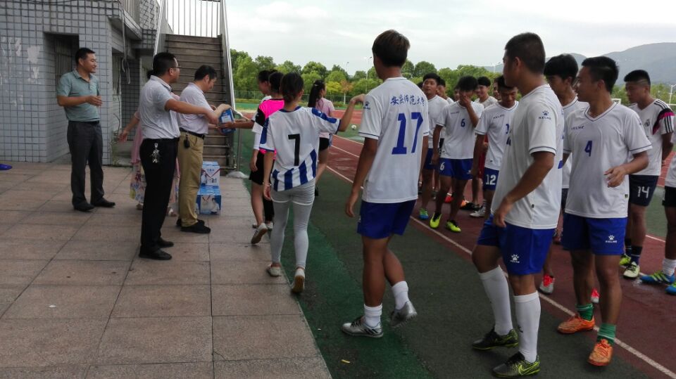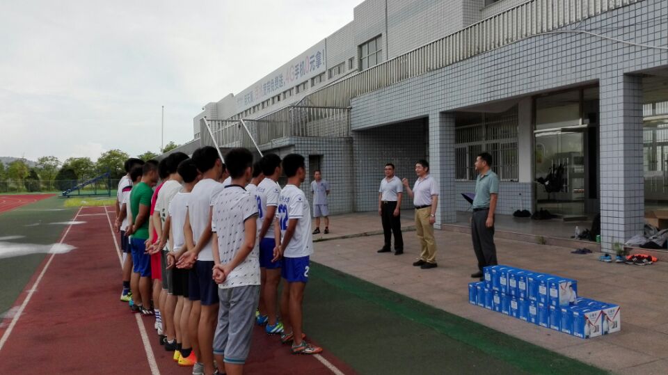 8月3日,公司党委委员、副董事长、校体艺委主任、校足球领导小组组长张群在体育公司党政领导的陪同下,冒着酷暑,亲临足球场,看望并慰问了正在紧张训练中的校足球队全体师生。