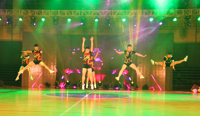 伴随着跌宕起伏的旋律,晚会在一群青春洋溢的女孩演绎的《追梦》中徐徐拉开帷幕。演员们身着绿色的舞裙在闪烁的灯光中摆动,绿色象征着公司学子的朝气蓬勃和对梦想的无限追求。高难动作和动感音乐完美融合的竞技健美操表演,更让观众惊叹不已,掌声连连,这也正是对同学们的刻苦训练、辛勤付出给予的最好肯定。拉丁团体舞的动作创编新颖独特,缠绵柔和的伦巴,热情洋溢的恰恰和激情的桑巴,让观众们大饱眼福。还有深情感人的民族舞《父母恩》,每个动作都流露了对亲人感情,感恩也正是我们在任何时候不可忘却的事情。精彩的演绎让人久久难以忘怀。歌舞剧《一梦三四年》道出了在场员工们的心声,演绎了一群活力四射的懵懂少年到毕业前的彷徨与不舍。