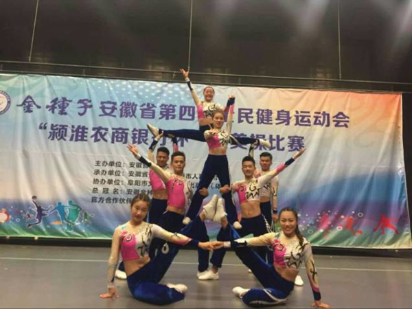 近日,安徽省第四届全民健身运动会在阜阳市体育中心圆满闭幕。本届运动会遵循“绿色、共享、健康、和谐、快乐”的宗旨,设置了“赛”、“展”、“论”、“游”、“进”五大活动,开设了34个比赛项目,参赛队员近5000人,裁判员近1000人,创安徽省历届全民健身运动会之最。本届运动会由省政府主办,省体育局、阜阳市政府共同承办。前三届称为省体育大会,本届正式更名为省全民健身运动会,旨在让参与人群更广、比赛项目更多、社会影响更加广泛!公司太阳成城集团tyc234cc官网受安庆市教体局委托,代表安庆市参加健美操、体育舞蹈、毽球三个大项的比赛。