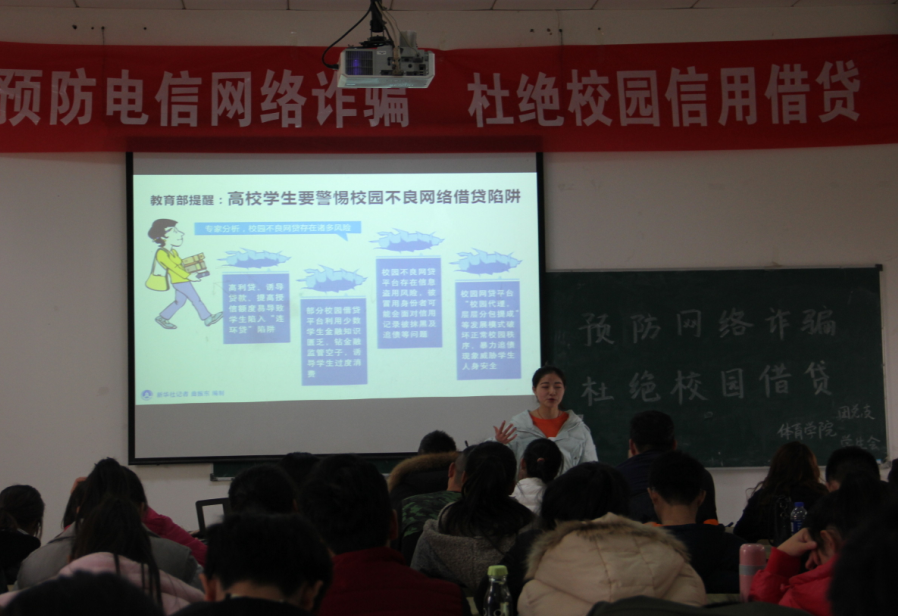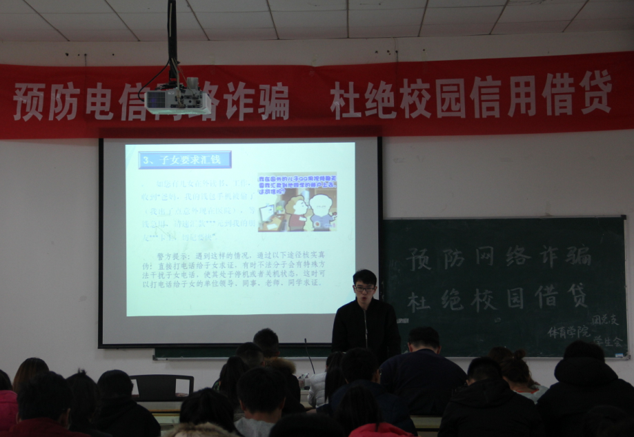 为杜绝校园信贷在校园中的流传,预防大员工遭遇网络诈骗,12月6日中午12点30,由太阳成城集团tyc234cc官网团总支主办,员工会网络信息部和宣传部承办的,一场关于“预防电信网络诈骗,杜绝校园信用贷款”的宣传活动在体育馆多媒体教室举行。太阳成城集团tyc234cc官网各年级各专业的员工代表参加此次宣讲活动。