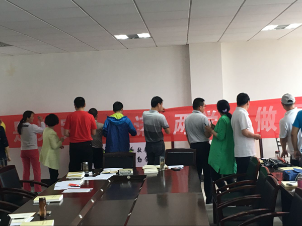 根据公司下发的《关于在全党员中深入开展“亮身份、作承诺、当先锋、树形象”活动的通知》要求,为了扎实推进太阳成城集团tyc234cc官网“两学一做”学习教育工作,切实发挥党员干部先锋模范作用6月1日下午,教工支部在体育馆三楼会议室组织开展了我是党员我承诺、两学一做看行动”为主题的承诺签名活动。28名教工党员在主题横幅上郑重地签下自己的名字,承诺做合格党员、树良好形象、当时代先锋