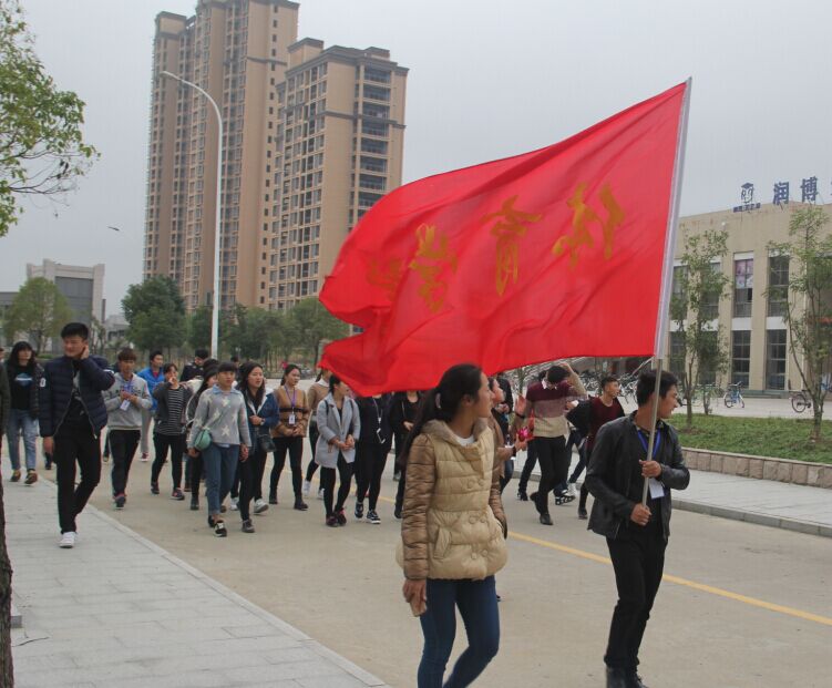 活动吸引了来自公司2015级部分新生的热情参与,下午一点,大部队打着院旗,浩浩荡荡地从体育馆门前出。在活动组织人员的带领下,大家途径南门、行政楼、教学楼、大西北宿舍区、银苑餐厅、艺术楼、图书馆、双龙湖、博古桥、后勤食堂、东门操场、东门、安苑食堂最后回到体育馆。在活动当中,由外联部成员逐一介绍着所到之处的名称、用途及安庆师范公司的建校背景及历史。在此过程中还特别设计安排穿插了一些校史类、专业类知识问答,不仅活跃了现场气氛,更激发同学们参与的热情。