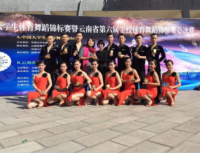 112022日,2015中国老员工体育舞蹈锦标赛在春城昆明隆重举行,来自六十三所大学、近千名选手因为体育舞蹈这项运动相聚于此。公司来自体育表演专业的体育舞蹈代表队,在夏尚群和汪洋老师的带领下,在为期两天的激烈竞争中,取得了全国综合类大学专业组拉丁队列舞第一,艺术双人舞第二,团体舞第五,规定套路第四和第五以及众多单项赛前八名的骄人成绩。安庆师范公司代表队还被组委会授予“优秀组织奖”。