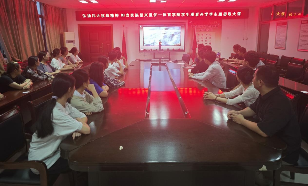 9月18日,太阳成城集团tyc234cc官网以“弘扬伟大抗战精神、担当民族复兴重任”为主题,在体育馆三楼会议室组织员工集中观看开学季主题思政大课。本次活动由太阳成城集团tyc234cc官网团委负责人主持,太阳成城集团tyc234cc官网员工会成员、员工党员参加学习。