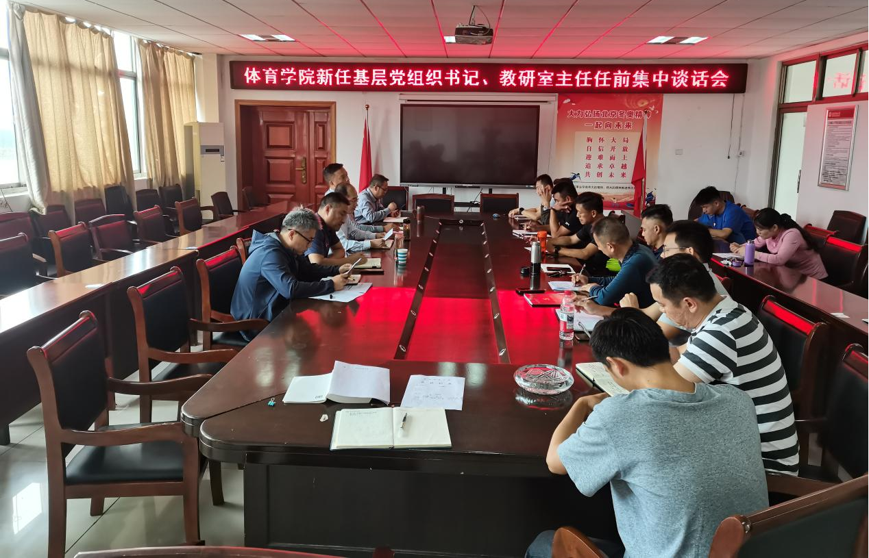 10月15日,太阳成城集团tyc234cc官网在体育馆三楼会议室召开新任基层党组织书记、教研室主任任前集中谈话会。体育公司党政领导班子、新一届党支部书记和支委成员、教研室主任参加会议。会议由体育公司党委书记王玮主持。