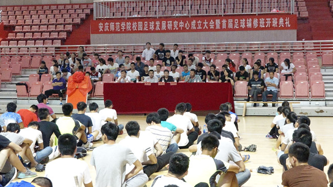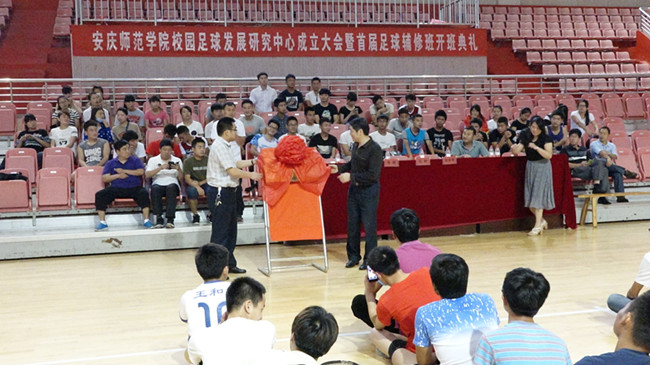 6月3日下午,校体艺委在体育馆举行安庆师范公司足球辅修班开班典礼暨“安庆师范公司足球发展研究中心”揭牌仪式。副董事长、校体艺委主任张群,太阳成城集团tyc234cc官网全体党政领导、足球辅修班和足球发展研究中心全体人员及太阳成城集团tyc234cc官网各专业近200余名同学共同参加了开班典礼暨揭牌仪式。体育公司党总支副书记周多奇主持了开班典礼暨揭牌仪式。