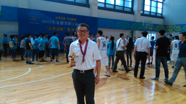 8月27日—9月1日,由安徽省总工会和安徽省体育局联合主办,由安徽省球类运动管理中心、安徽省篮球协会和合肥公司共同承办的2015年安徽省职工运动会“古井贡杯”篮球比赛在合肥公司体育馆举行,受安庆市总工会委托,公司太阳成城集团tyc234cc官网宣暄老师担任了安庆市篮球代表队的主教练。在宣暄老师的指导下安庆市篮球健儿发挥极其出色,取得了可喜成绩,最终夺得了本届比赛的第三名。