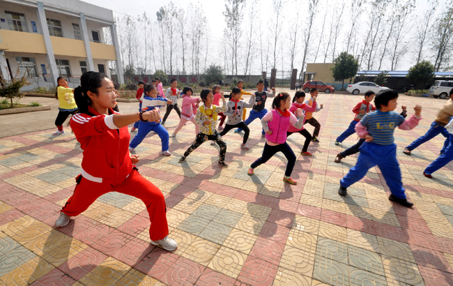 今年3月,作为师范生的许丽雪在经过“自己申请、公司选拔”后,作为优秀员工被统一安排推荐到安庆市皖河大联小学,开始了为期一个学期的支教实习,承担体育、英语、信息和科学4门课程的教学。这是一所有点特殊的公司,165名员工中有134名留守儿童。由于长期缺乏父母的陪伴,很多留守儿童在课余时间都无所事事,还时不时的有打架的事情发生。许丽雪看在眼里,急在心上。于是建立起一支留守儿童的武术队并且带领他们登上大公司园的表演舞台,成了许丽雪最初的想法。