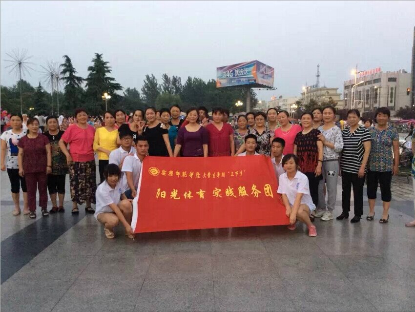 除此之外,队员们每天晚间也顾不上休息,继续推进我们的“健康体育下乡镇、进社区,科学健身指导”活动之行。晚间的活动内容主要是广场舞的教学。队员们选择了人群比较集中的广场或公园,如霍邱县人民广场和新街口等地,充分利用太阳成城集团tyc234cc官网团队成员的专业优势,一展安师院体院员工风采的同时,也不忘履行服务基层的责任,把最时尚最流行的健身舞蹈带到了基层广场舞队伍当中,广大群众和我们的老员工一起舞动,分享着运动带来的健康和快乐。