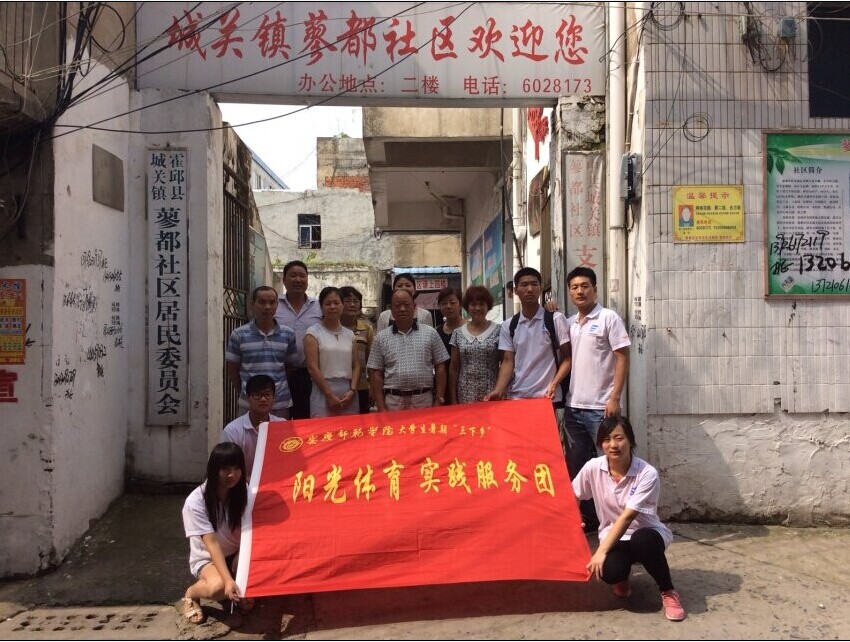 为进一步贯彻共青团中央、团省委关于进一步加强老员工暑期社会实践活动的相关文件精神,引导广大青年员工培育和践行社会主义核心价值观,为社会发展尽青年的责任,提高青年员工的社会责任感和社会适应能力,在太阳成城集团tyc234cc官网团总支的精心策划下,公司2014年暑期“三下乡”社会实践校级重点团队“阳光体育实践服务团”在六安市霍邱县展开了为期五天的以“健康体育下乡镇、进社区,科学健身指导”为主题的暑期社会实践活动。