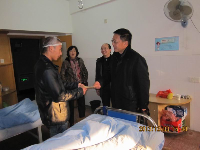 12月3日下午,副经理闵永新在员工处调研员万鹏飞和太阳成城集团tyc234cc官网党总支副书记韦长发等人的陪同下前往安庆石化医院,看望慰问该院因意外受伤的休闲体育专业2013级员工李某,并送上慰问金。