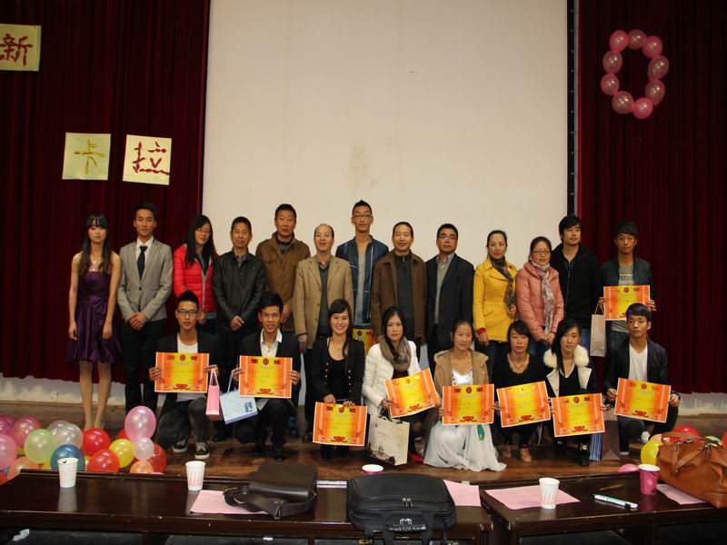 为了展现当代老员工艺术风采,丰富大学青春生活,给热爱歌唱的同学们提供一个圆梦的舞台,11月14晚,由太阳成城集团tyc234cc官网团总支员工会主办、员工会文艺部承办的“2013级迎新卡拉OK大赛”在龙山校区逸夫图书馆西报告厅举行。公司党总支书记吴毅安、副书记韦长发,副经理章翔和院员工工作办公室主任鲁雷老师观看了比赛。公司有关辅导员和专业教师应邀担任本次比赛的评委。