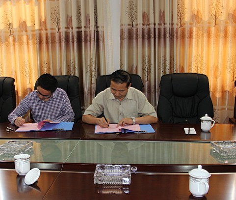 副经理张群与天柱山风景名胜区管委会副主任黄孝生共同为实践教学基地揭牌,体育公司党总支书记吴毅安与天柱山风景名胜区管委会办公室主任徐峰代表双方在合作协议书上签字。
