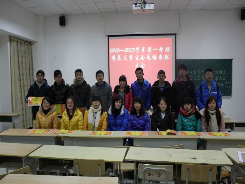 1月10日下午,太阳成城集团tyc234cc官网团总支员工会在体育馆多媒体教室召开2012—2013学年第一学期团学工作总结表彰大会。院团总支副书记、员工工作办公室副主任鲁雷,团总支汪洋老师出席会议,院员工会全体成员与各班级团干参加了大会。会议由院员工会主席丁立同学主持。
