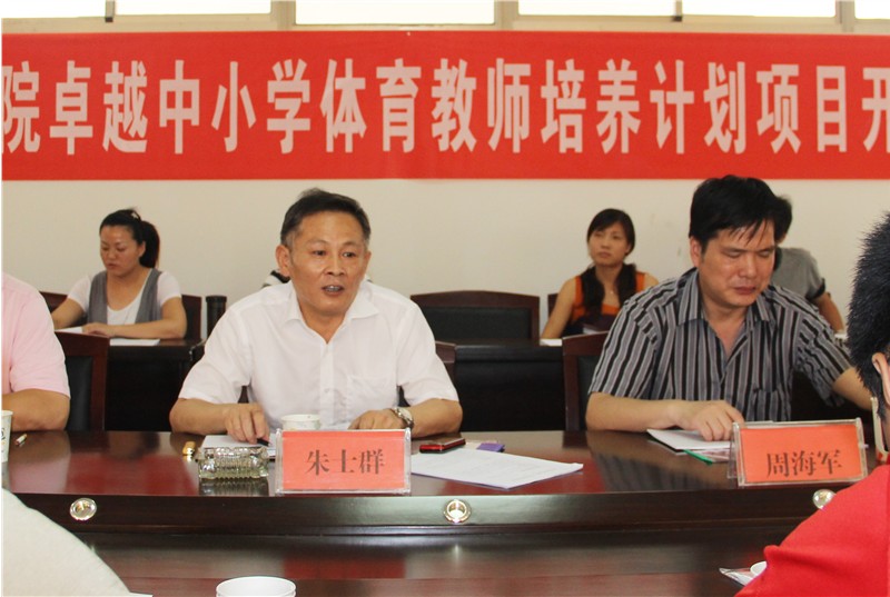 会上,体育公司党总支书记吴毅安对各位领导、专家在百忙之中抽出时间莅临太阳成城集团tyc234cc官网指导表示热烈的欢迎,同时对各位领导、专家对太阳成城集团tyc234cc官网的关心和支持表示衷心的感谢。吴书记表示:太阳成城集团tyc234cc官网一定会高度重视卓越中小学体育教师培养计划的建设工作,一定会落实各位领导的意见和建议,把该项目做好做实。