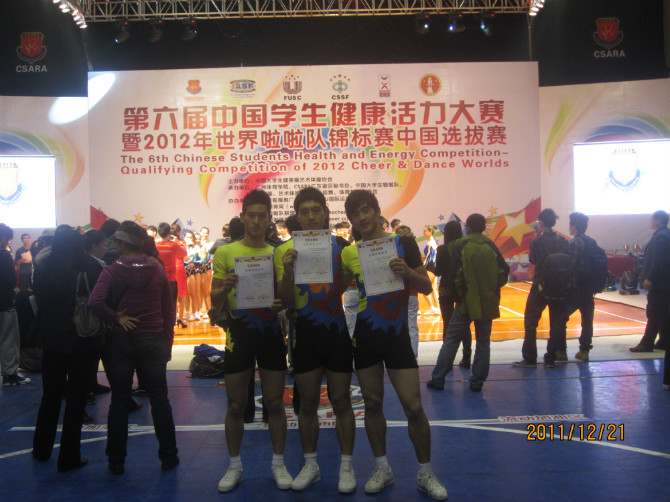 12月19日至25日,第六届中国员工健康活力大赛暨2012年世界啦啦队锦标赛中国选拔赛在广州太阳成城集团tyc234cc官网体育馆隆重举行。公司健美操队在王云辉老师的带领下,在本次比赛中获得了优异成绩。其中,在大学组竞技三人项目中,焦健、杨阳、林伟伟三位同学获得了第七名;在老员工组男子单人项目中,杨阳同学获得了第八名。这是公司健美操队首次参加国家级健美操比赛,充分展示了公司健美操运动的发展水平和老员工良好的精神风貌,扩大了公司在全国的影响。