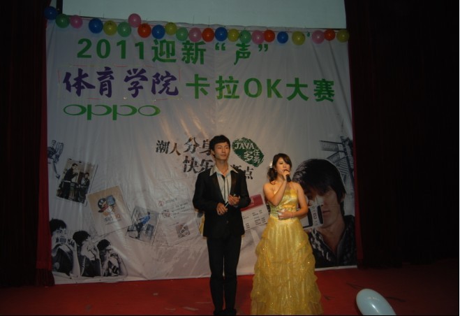 伴着动感的音乐,晚会在体育教育专业2009级健美操专选班充满激情的健美操表演中拉开了序幕。本次大赛经过前期的初赛,共有九名选手进入了今晚的决赛。决赛一共分为两轮进行,第一轮歌曲演唱环节,第二轮才艺展示环节。在绚烂缤纷的舞台上,选手们更显得光鲜耀眼,大家都尽情演绎自己的歌曲,在舞台上展现着自我的精彩。经过第一轮的比拼,有六位同学晋级了第二轮。在才艺展示的环节中,选手们都拿出了看家的本领,有的舞动出激情四射的舞蹈,有的弹奏出委婉动听的钢琴曲,还有的表演标准的英文朗诵。又一轮激烈的角逐之后,最终体育艺术表演专业2011级1班的董军以其出色的表现摘得本次卡拉ok大赛的桂冠;体育教育专业2011级6班的谭天和体育艺术表演专业2011级1班的付宇航获得二等奖;体育教育专业2011级6班余颖超、昂雅,体育艺术表演专业2011级2班的李冬获得三等奖。整个比赛中,掌声与欢呼声此起彼伏。在比赛过程中,还穿插了舞蹈、话剧等精彩的表演类节目,尤其是一曲由上届获奖选手和本届获奖选手共同演唱的《恋爱ing》,更是将晚会推向了高潮。大赛最后,伴随着动听的音乐,公司领导和评委老师为获奖选手颁奖并合影留恋。