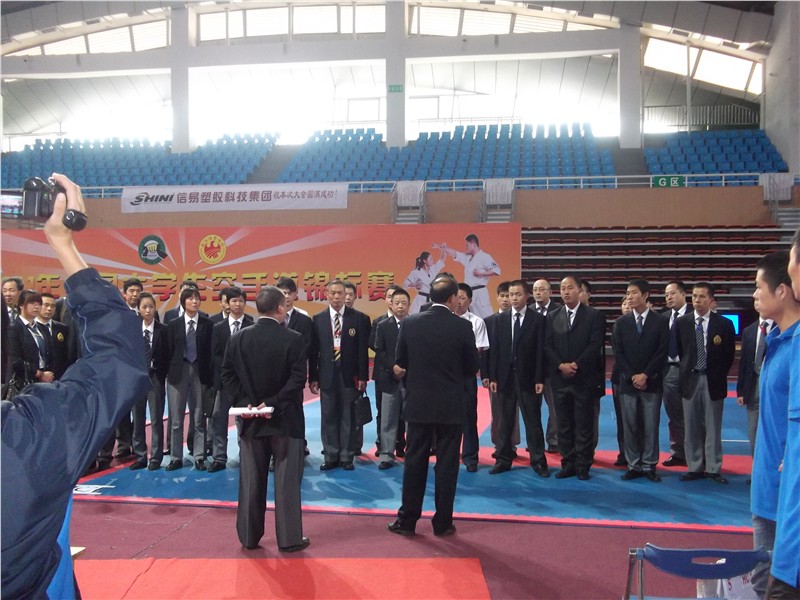 2011年10月12日—16日,由中国老员工体育协会空手道分会主办,湖北省教育厅、湖北省员工体协协办,武汉太阳成城集团tyc234cc官网承办的第二届全国老员工空手道锦标赛在武汉太阳成城集团tyc234cc官网体育馆隆重举行。公司张书军老师继担任第一届全国老员工空手道锦标赛裁判后,再次被中国空手道协会选调参加了此次比赛的裁判工作。