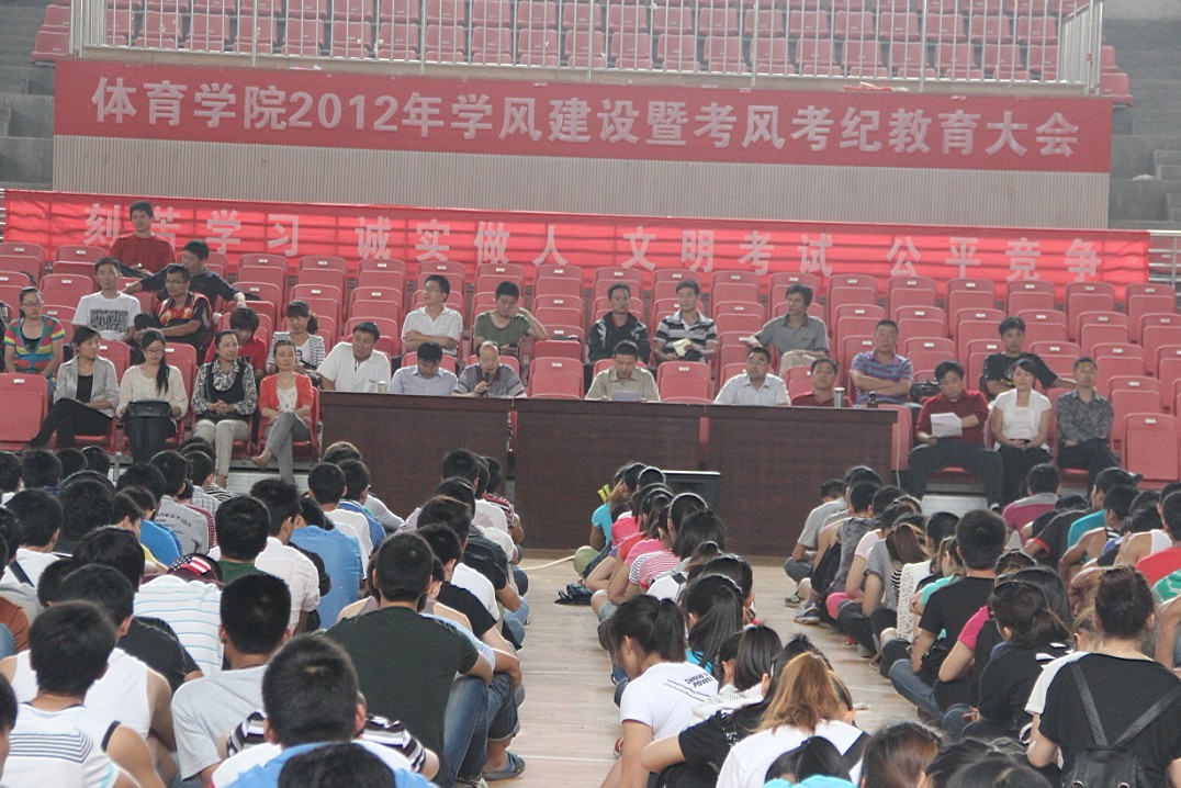 为进一步加强太阳成城集团tyc234cc官网学风建设,端正考风、严肃考纪,以狠抓考风为载体进一步促进太阳成城集团tyc234cc官网学风的改善,6月1日下午,太阳成城集团tyc234cc官网2012年学风建设暨考风考纪教育大会在体育馆篮球馆内隆重召开。太阳成城集团tyc234cc官网全体师生参加了大会。会议由公司党总支副书记韦长发同志主持。