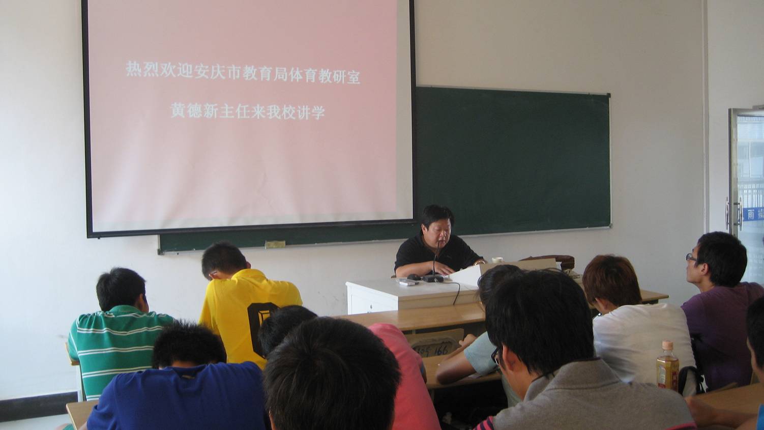 安庆市教育局体育教研室黄德新主任前来公司讲学