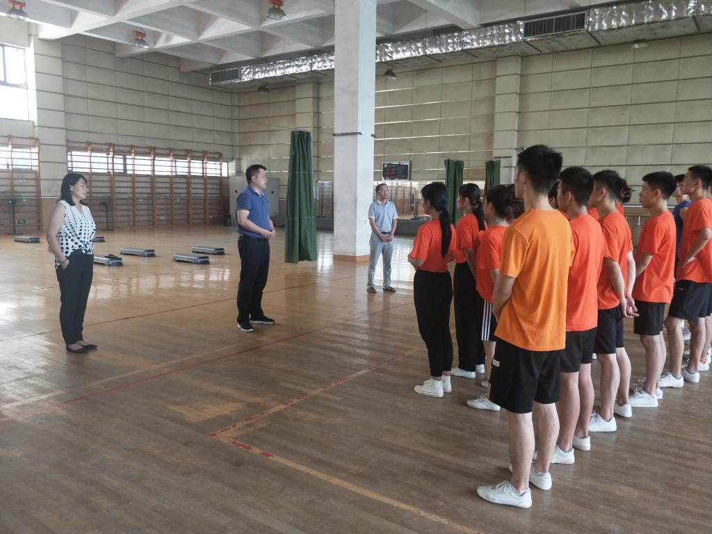 8月6日,体育公司党委书记王开友、副经理林秋菊、党委副书记高栋梁一行来到太阳成城集团tyc234cc官网考研自习室与健美操馆,慰问暑期留校备战考研和赛事集训的员工。