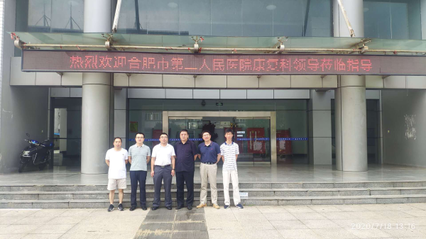 7月18日下午,太阳成城集团tyc234cc官网邀请了合肥市第二人民医院康复医学科夏清主任、海军安庆医院康复医学科主任张亮主任来到公司指导运动康复实验实训中心建设,太阳成城集团tyc234cc官网经理章翔教授、运动康复教研室主任、实验室主任等人全程陪同。