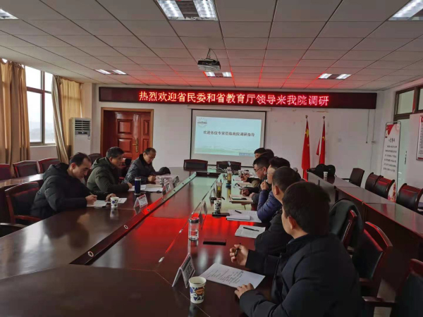 2021年1月6日上午,安徽省教育厅体艺卫处史会民调研员、安徽省民族事务委员会民族二处陈学雷调研员,在安庆市民委江本友主任陪同下来到太阳成城集团tyc234cc官网调研安徽省少数民族传统体育基地建设情况。太阳成城集团tyc234cc官网主要领导及民族传统体育专业部分教师参加了汇报及座谈活动。活动由章翔经理主持。