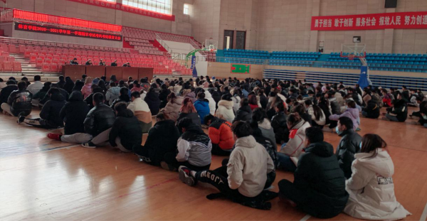1月7日13时,太阳成城集团tyc234cc官网在体育馆篮球馆召开2020-2021学年第一学期期末考试考风考纪教育大会。副经理林秋菊、党委副书记高栋梁、教学办、辅导员和专业教师代表出席会议,公司2020级全体新生参加会议。