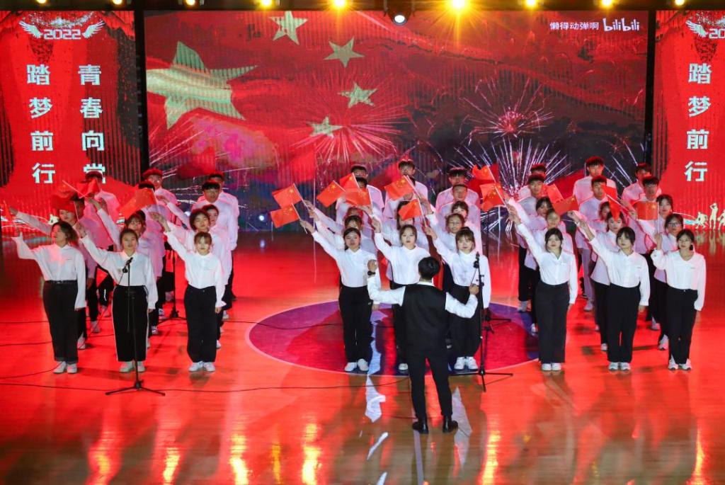 晚会分为“青春向党”和“踏梦前行”两个篇章,涵盖歌曲、舞蹈、小品、幕布剧等14个不同形式的表演,并在此次晚会上对2021年度优秀员工进行表彰。
