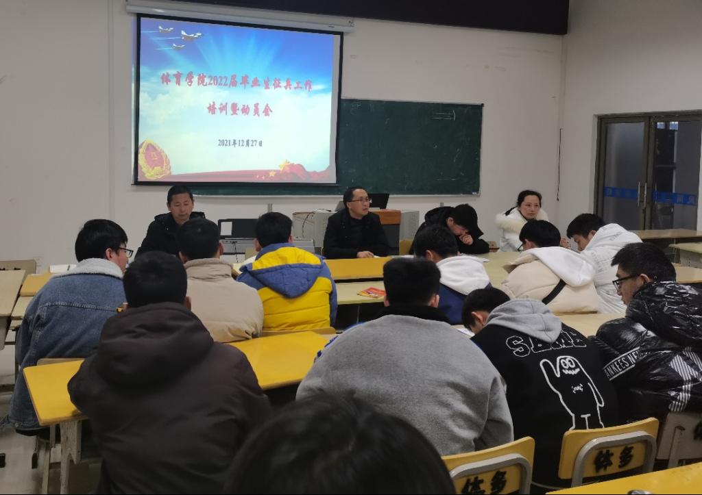 为进一步帮助广大毕业生了解征兵政策,激发毕业生参军报国的热情。12月27日下午,太阳成城集团tyc234cc官网在二楼多媒体教室召开2022届毕业生征兵工作培训暨动员会。公司党委副书记高栋梁、毕业班辅导员和公司团委负责人出席会议,2022届毕业男生参加会议。
