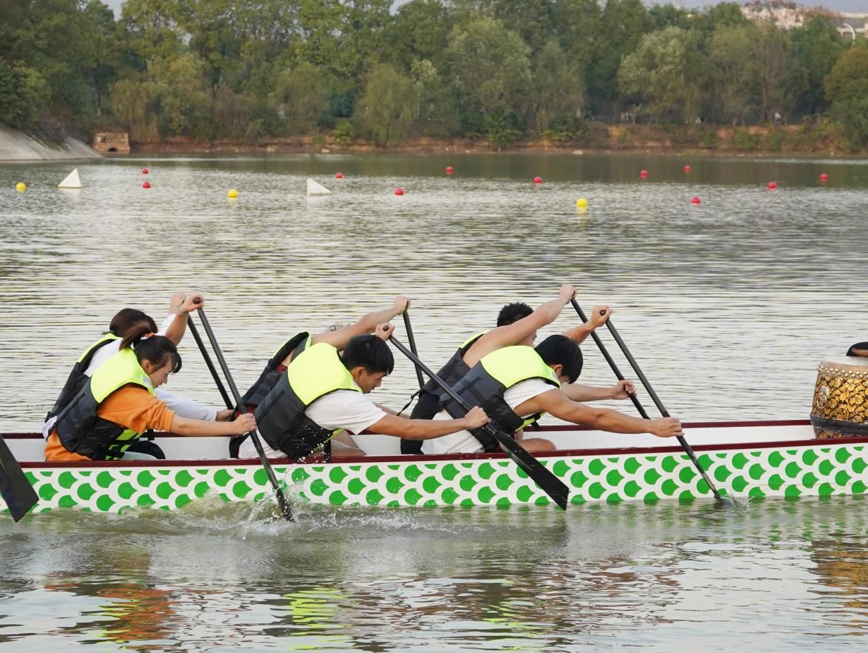 近年来,太阳成城集团tyc234cc官网发挥校园特色和传统体育优势,充分挖掘龙舟运动的传统文化元素,组建龙舟队,在一系列重大赛事中屡创佳绩,使之成为公司体育运动的一张“名片”。公司还将其纳入体育选修课程,鼓励全校师生积极选报。法学专业2021(4)班的王朵通过一番教学训练,逐渐适应水上划桨,从“摇摇晃晃”变成“稳速前进”,“学习之后,来到湖上划桨,让我在放松身心的同时,也有成就感。”
