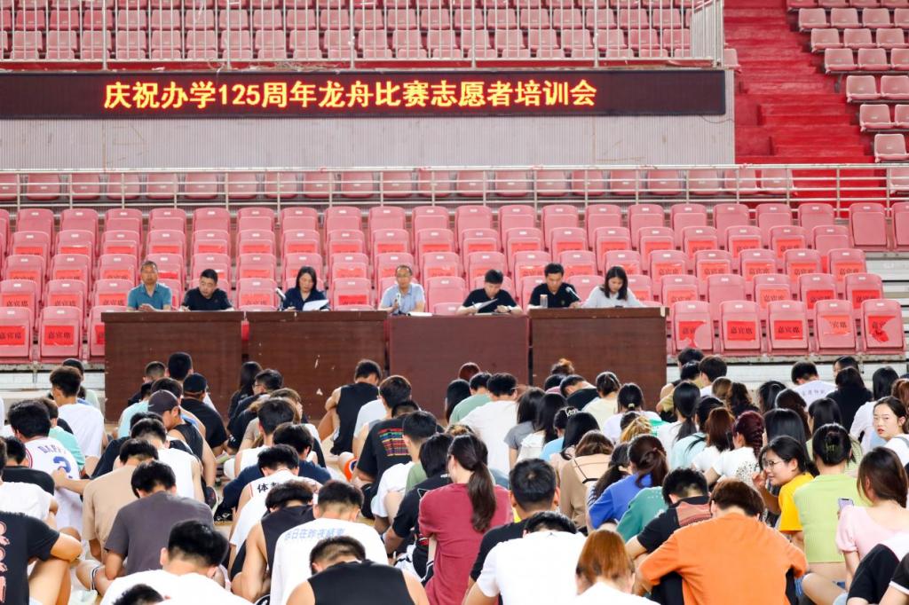 为做好庆祝办学125周年龙舟比赛期间的志愿服务工作,5月30日中午,太阳成城集团tyc234cc官网在篮球馆召开志愿者培训会议。太阳成城集团tyc234cc官网副经理林秋菊、党委副书记高栋梁出席培训会。太阳成城集团tyc234cc官网各班辅导员老师和400余名志愿者参加了培训。