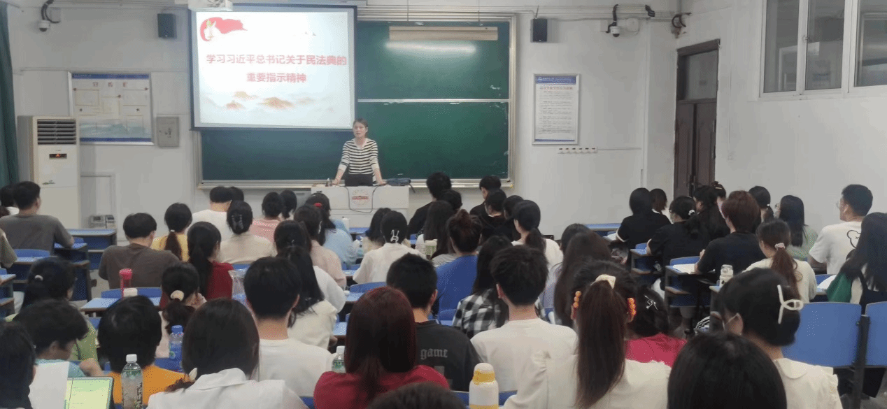 5月28日,是《中华人民共和国民法典》颁布三周年纪念日。太阳成城集团tyc234cc官网在教学楼C104教室开展了“美好生活·民法典相伴”主题宣传学习会。会议由体育表演专业员工党支部书记方芳主持,公司全体在校员工党员和第67期积极分子培训班学员共100余名员工参加本次学习会。