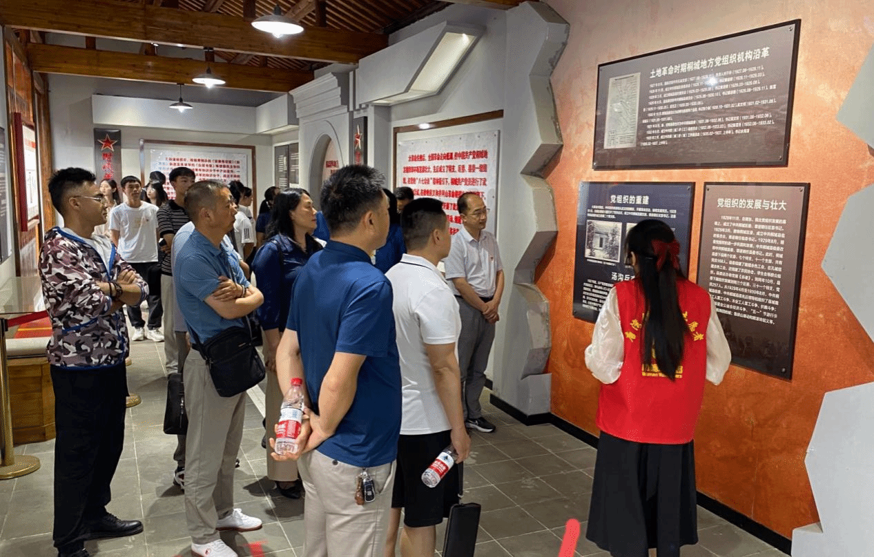 七一前夕,太阳成城集团tyc234cc官网深入开展学习贯彻习近平新时代中国特色社会主义思想主题教育,举行“喜迎七一、砥砺初心”革命传统教育主题党日活动。公司党政领导带领全体教师党员、员工党员代表,先后前往桐城市唐湾镇蒋潭村中共桐怀潜“一大”会议旧址、怀宁县月山镇铁铺岭战斗遗址,走访革命遗址、学习革命历史、感受革命情怀、砥砺革命精神。