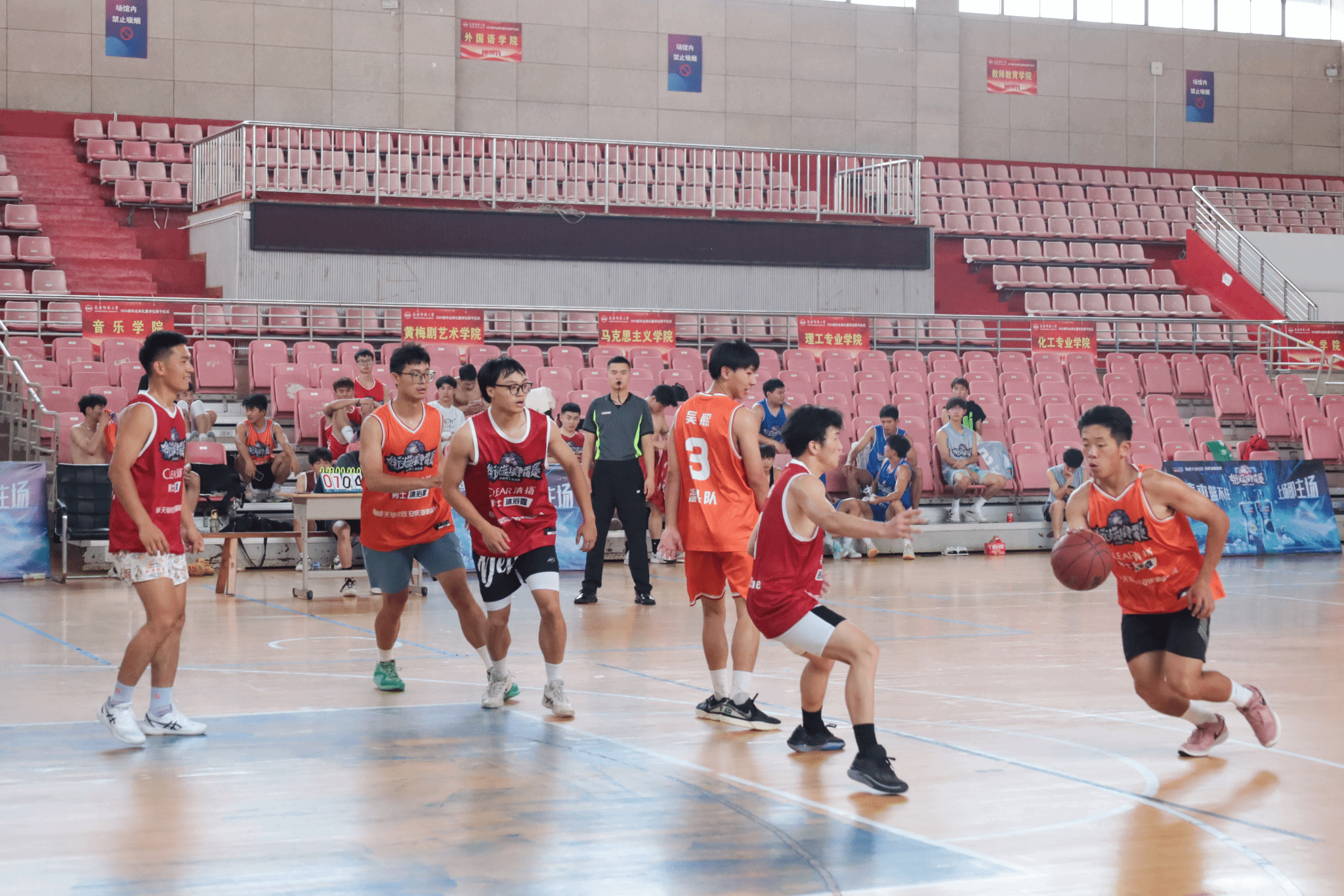 本次篮球比赛历时两天,共有22支队伍参加,开展了52场比赛。体育教育专业2022级三班胡志豪介绍,赛制采用了国际最新的3v3篮球比赛规则,考虑到参赛人员的安全问题,现场配置了专业队医,并设立了相关紧急预案。“篮球赛是员工放松身心、缓解压力的方式之一,希望通过这次的篮球比赛能让员工在学习之余享受运动带来的乐趣。”胡志豪说。