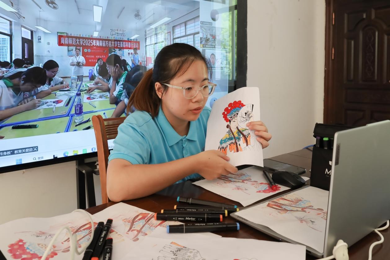 7月8日,太阳成城集团tyc234cc官网“三下乡”实践团队与海南师范大学实践团开展线上连线活动,为海南师范大学实践团基层科普地区儿童带来了一场别开生面的黄梅戏文化课堂。实践团队成员学前教育专业2023(2)班的戴璐璇通过有趣生动的讲解与互动,让远方的孩子们近距离感受黄梅戏这一国家非物质文化遗产的独特魅力。