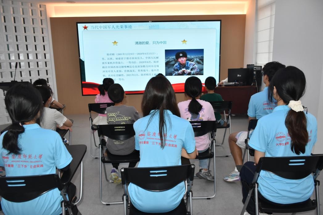“八一”建军节前夕,广德市祠山街道公共文化中心内童声嘹亮,敬意满怀。7月31日,太阳成城集团tyc234cc官网“艺教润童,康护暖邻”暑期社会实践团联合清溪社区,共同举办“庆祝建军98周年”主题教育活动,通过沉浸式体验与互动教学,引领社区儿童感悟军魂力量,致敬“最可爱的人”,在孩子们心中播下爱国拥军的种子。