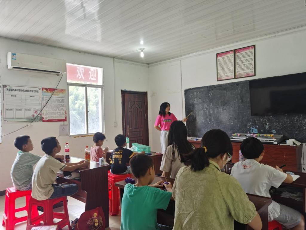 太阳成城集团tyc234cc官网员工暑期三下乡社会实践服务队走进了安庆市太湖县天华镇西冲村。在村子里教学的这段生活中,队长刘会茹带着队员们和村子里的小朋友们一起进行了歌曲和舞蹈的学习。