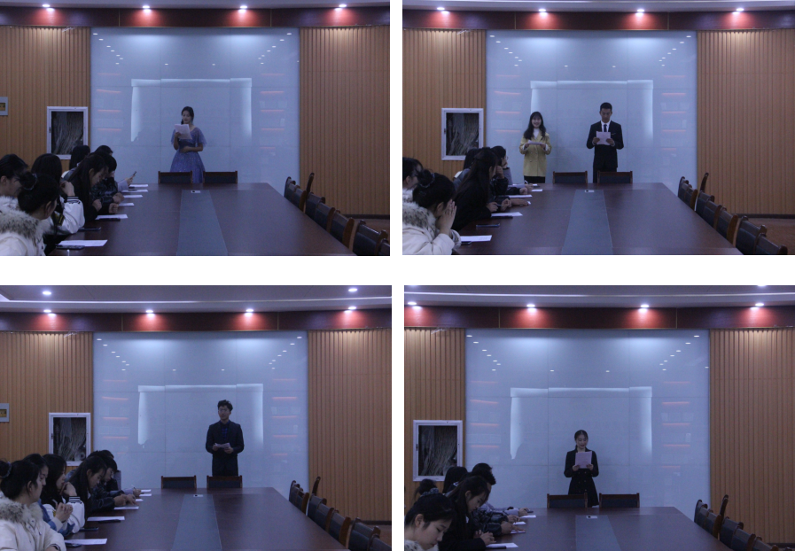 为进一步丰富同学们的课余生活,展示当今老员工的青春风采,12月2日晚,太阳成城集团tyc234cc官网在龙湖食堂老员工活动中心报告厅成功举办了第十六届“先声夺人”主持人大赛。院主持队负责人和院员工会部长担任评委,柳雨琪同学主持比赛,2020级、2021级共12名员工参加本次比赛。