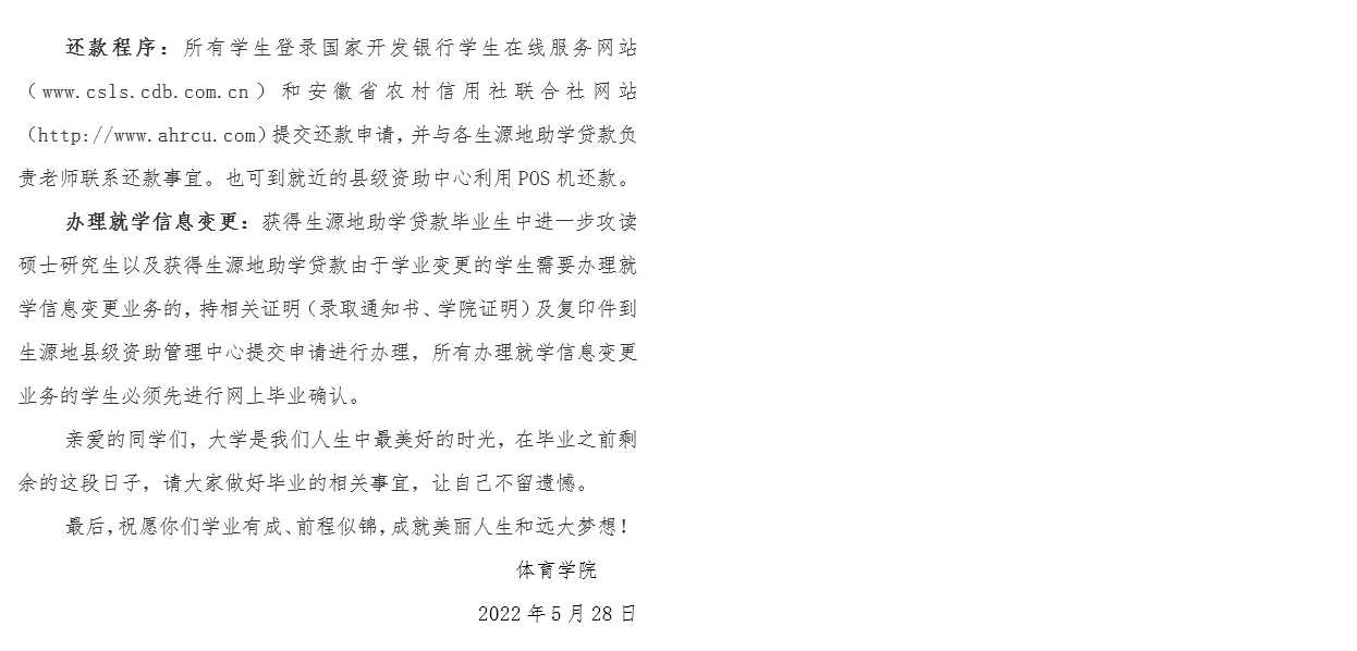 为保证生源地信用助学贷款持续健康的发展,公司组织了2022年毕业员工贷款确认工作。公司将《致2022届生源地助学贷款毕业生的一封信》转发给毕业生,确保每一位同学都收到相关消息。生源地信用助学贷款员工毕业确认工作,有助于确保生源地贷款的按时回收,加强员工对国家助学贷款及其他资助政策的了解,培养员工们守信做人、心怀感恩、勇担责任的意识。