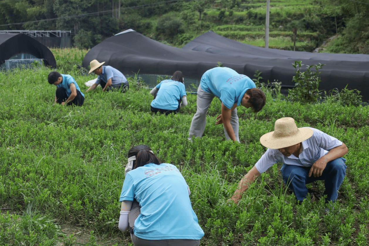“清理杂草的时候要注意保护作物的根部,必要时可以轻微按住根部土壤。”正在田地劳作的村民向队员们介绍着拔除杂草的注意事项。据了解,团队前往的农田种植的是该村经济作物之一——瓜子黄杨,是常见的绿化树种,今年种植了约60万株,该经济作物每年都能为西冲村带来较为可观的经济收入。
